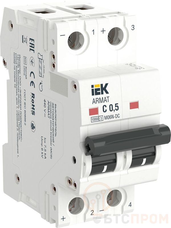 Выключатель автоматический модульный 2п C 0.5А M06N-DC ARMAT IEK AR-M06N-2-C0D5DC фото в каталоге от BTSprom.by