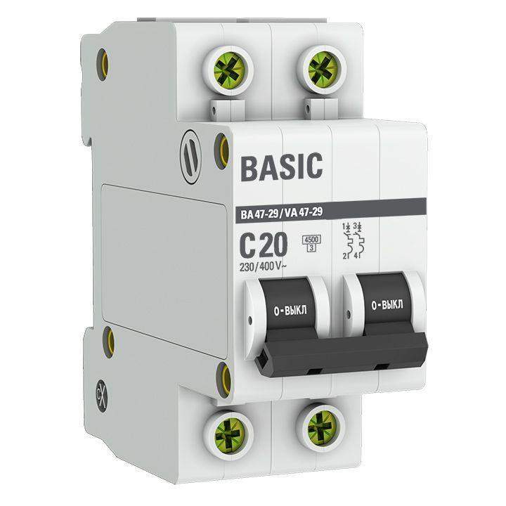 –Выключатель автоматический модульный 2п C 20А 4.5кА ВА 47-29 Basic EKF mcb4729-2-20C