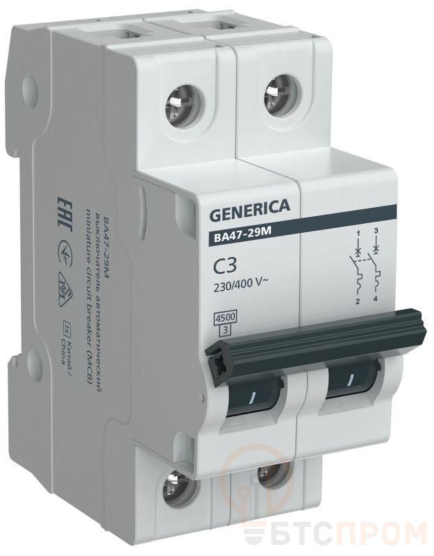 Выключатель автоматический модульный 2п C 3А 4.5кА ВА47-29М GENERICA MVA21-2-003-C-G