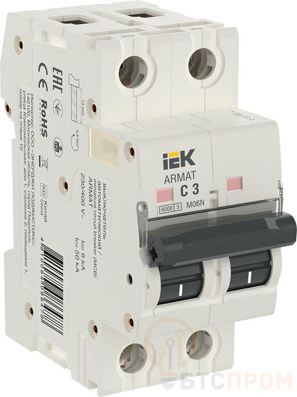 Выключатель автоматический модульный 2п C 3А M06N ARMAT IEK AR-M06N-2-C003 фото в каталоге от BTSprom.by