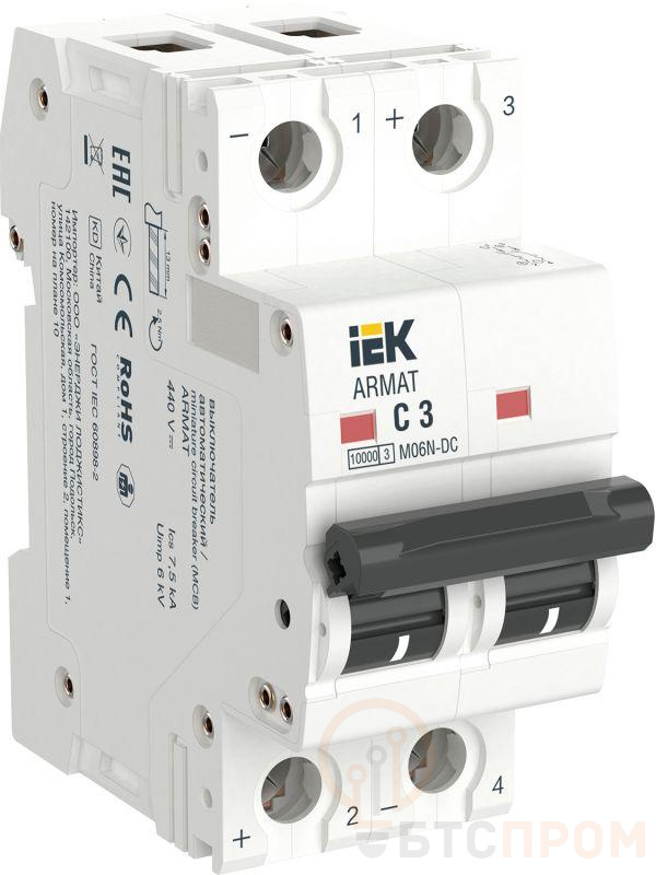 Выключатель автоматический модульный 2п C 3А M06N-DC ARMAT IEK AR-M06N-2-C003DC фото в каталоге от BTSprom.by