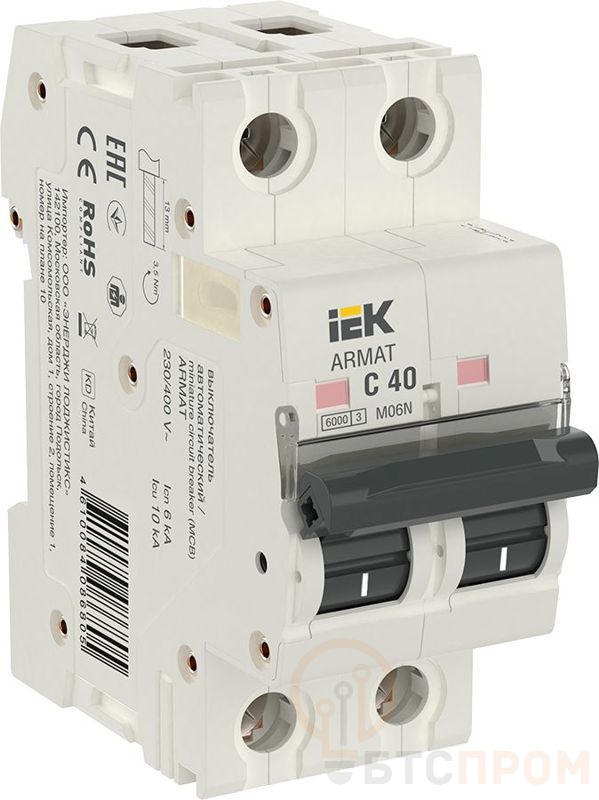 Выключатель автоматический модульный 2п C 40А M06N ARMAT IEK AR-M06N-2-C040 фото в каталоге от BTSprom.by