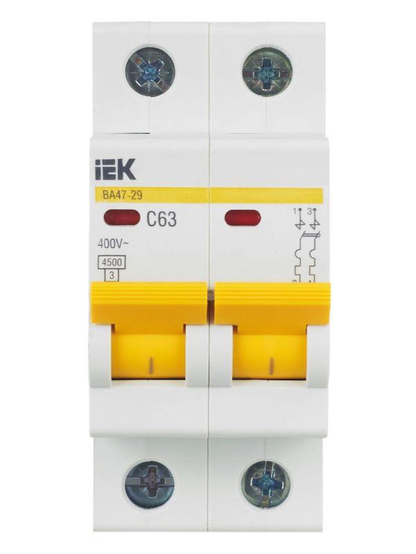 Выключатель автоматический модульный 2п C 63А 4.5кА ВА47-29 KARAT IEK MVA20-2-063-C фото в каталоге от BTSprom.by