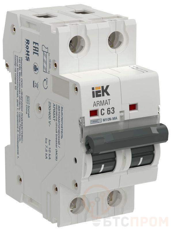 Выключатель автоматический модульный 2п C 63А M10N-MA без тепл. расцеп. ARMAT IEK AR-M10N-MA-2-C063 фото в каталоге от BTSprom.by