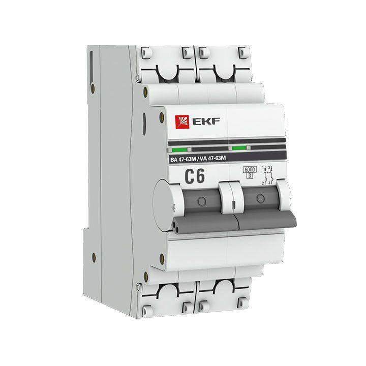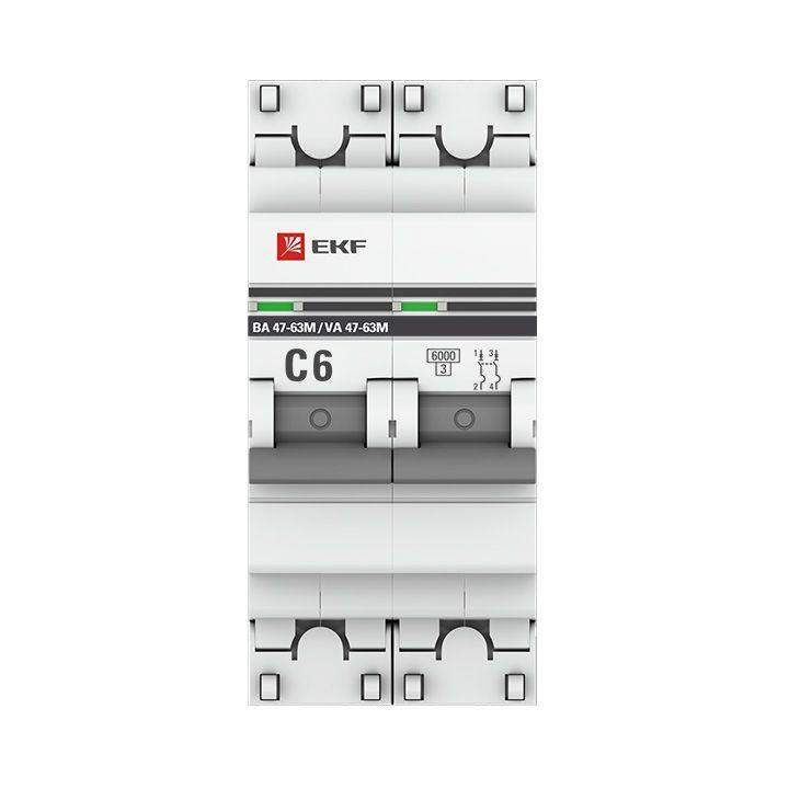 Выключатель автоматический модульный 2п C 6А 6кА ВА 47-63M электромагнит. расцеп. PROxima EKF mcb4763m-6-2-6C-pro