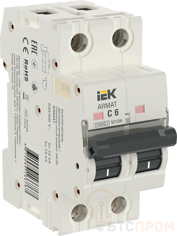 Выключатель автоматический модульный 2п C 6А M10N ARMAT IEK AR-M10N-2-C006 фото в каталоге от BTSprom.by