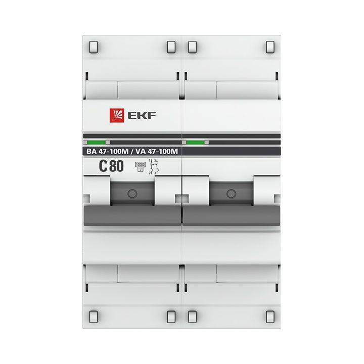 Выключатель автоматический модульный 2п C 80А 10кА ВА 47-100M электромагнит. расцеп. PROxima EKF mcb47100m-2-80C-pro