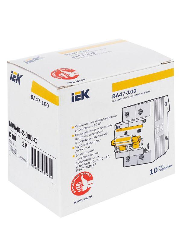 Выключатель автоматический модульный 2п C 80А 10кА ВА47-100 KARAT IEK MVA40-2-080-C фото в каталоге от BTSprom.by