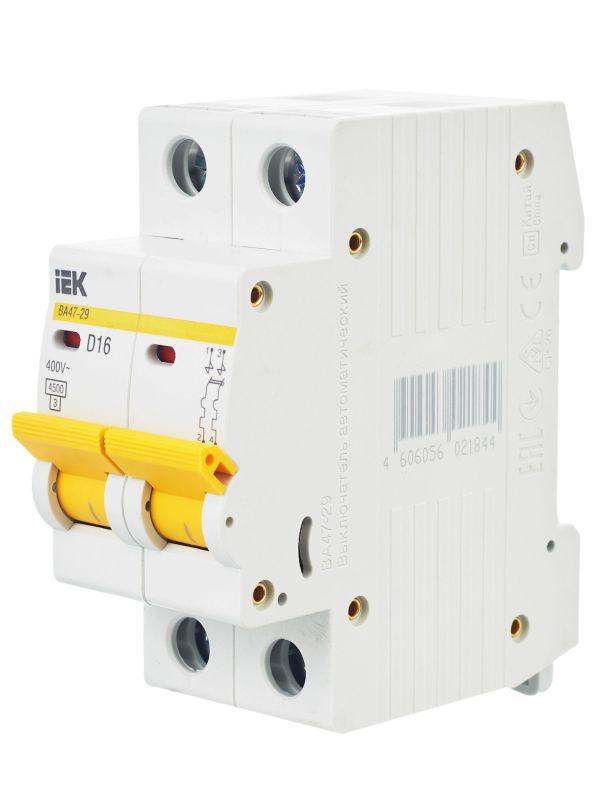 Выключатель автоматический модульный 2п D 16А 4.5кА ВА47-29 KARAT IEK MVA20-2-016-D фото в каталоге от BTSprom.by