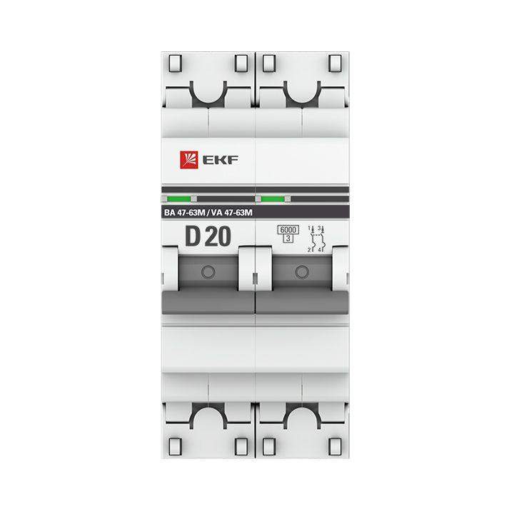 Выключатель автоматический модульный 2п D 20А 6кА ВА 47-63M с одним магнит. расцеп. EKF mcb4763m-6-2-20D-pro
