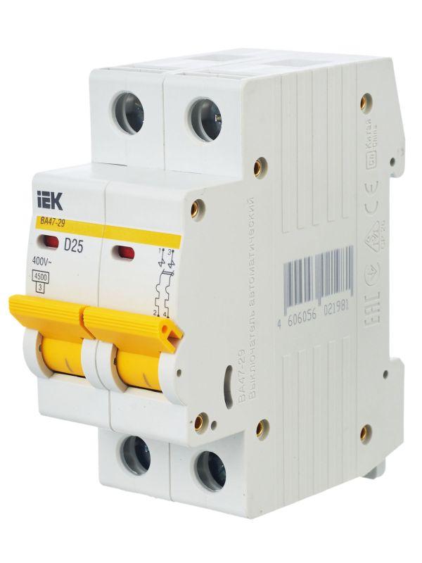 Выключатель автоматический модульный 2п D 25А 4.5кА ВА47-29 KARAT IEK MVA20-2-025-D фото в каталоге от BTSprom.by