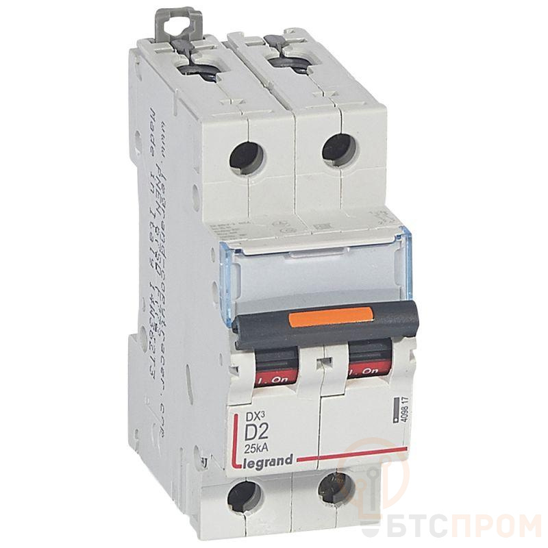 Выключатель автоматический модульный 2п D 2А 25кА DX3 2мод. 230/400В Leg 409817 фото в каталоге от BTSprom.by
