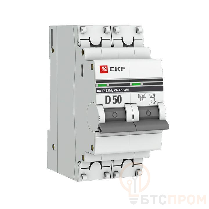 Выключатель автоматический модульный 2п D 50А 6кА ВА 47-63M с одним магнит. расцеп. EKF mcb4763m-6-2-50D-pro
