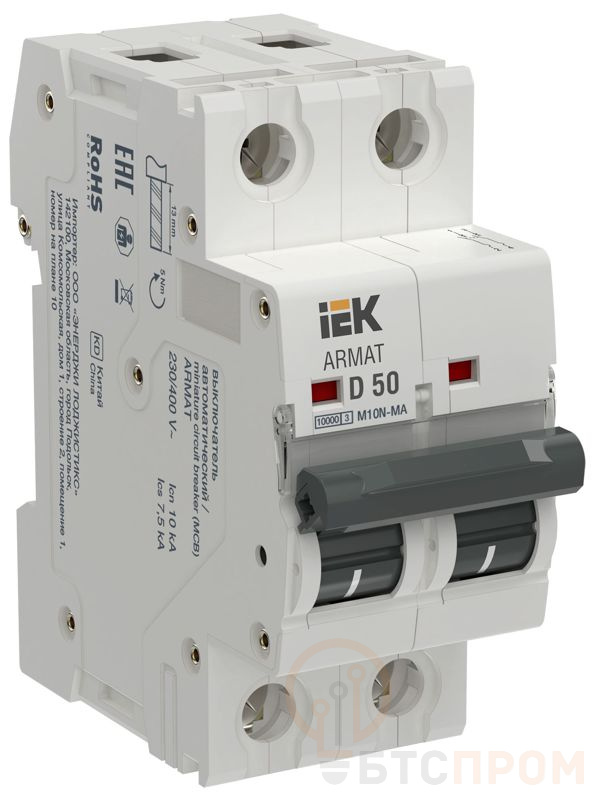 Выключатель автоматический модульный 2п D 50А M10N-MA без тепл. расцеп. ARMAT IEK AR-M10N-MA-2-D050 фото в каталоге от BTSprom.by