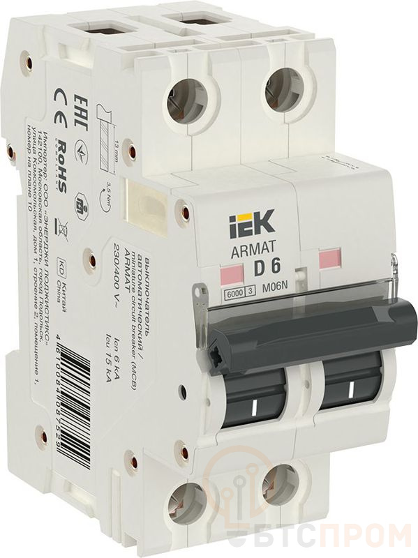 Выключатель автоматический модульный 2п D 6А M06N ARMAT IEK AR-M06N-2-D006 фото в каталоге от BTSprom.by