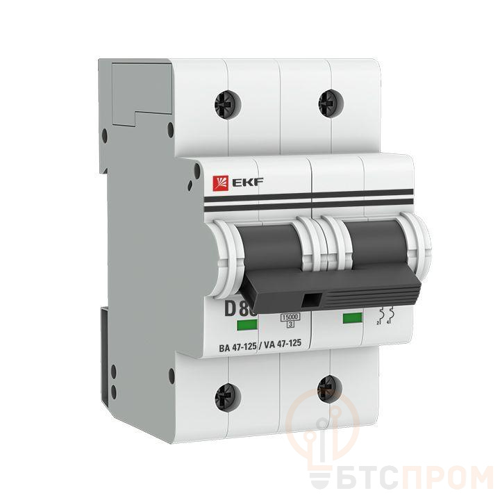 Автоматические выключатели ВА 47-125 EKF PROxima благодаря высокой предельной коммутационной способности 15 кА могут использоваться вместо силовых автоматических выключателей. Выключатели имеют ширину корпуса 1,5 модуля (27 мм), производятся с номинальными токами до 125 А. Для надежного гашения дуги используется двойной разрыв контактов и две дугогасительные камеры. Оптимальная токопроводимость обеспечивается серебросодержащей контактной группой.