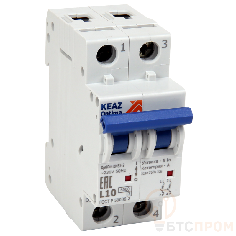 –Выключатель автоматический модульный 2п K 16А 6кА OptiDin BM63-2NK16-УХЛ3-РЕГ КЭАЗ 280377