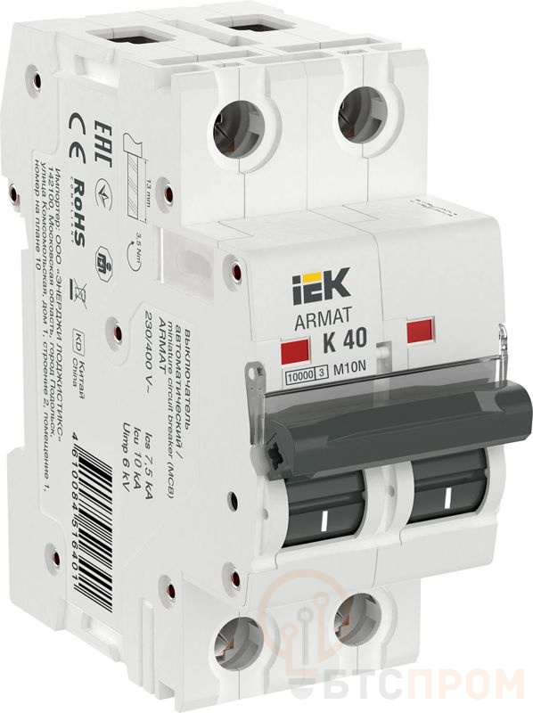 Выключатель автоматический модульный 2п K 40А M10N ARMAT IEK AR-M10N-2-K040 фото в каталоге от BTSprom.by