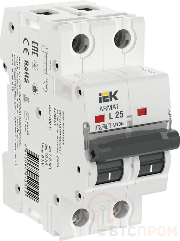 Выключатель автоматический модульный 2п L 25А M10N ARMAT IEK AR-M10N-2-L025 фото в каталоге от BTSprom.by