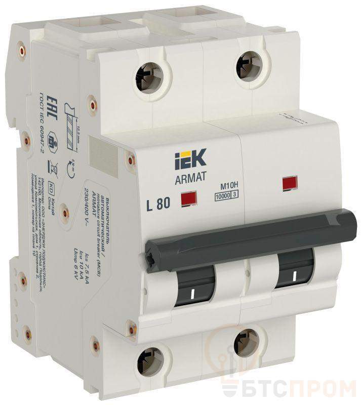 Выключатель автоматический модульный 2п L 80А M10H ARMAT IEK AR-M10H-2-L080 фото в каталоге от BTSprom.by
