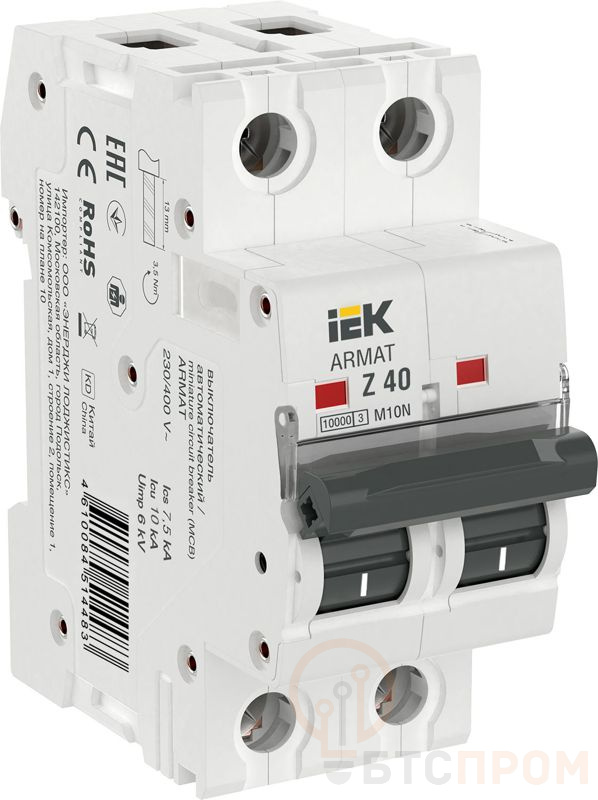 Выключатель автоматический модульный 2п Z 40А M10N ARMAT IEK AR-M10N-2-Z040 фото в каталоге от BTSprom.by