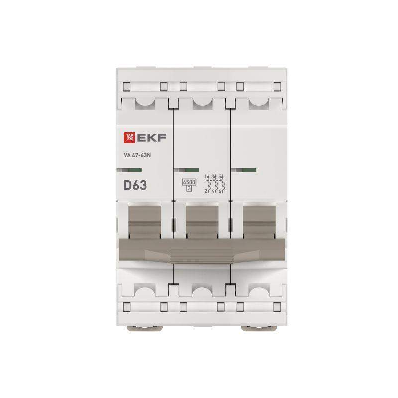 Выключатель автоматический модульный 3п D 63А 4.5кА ВА 47-63N PROxima EKF M634363D фото в каталоге от BTSprom.by