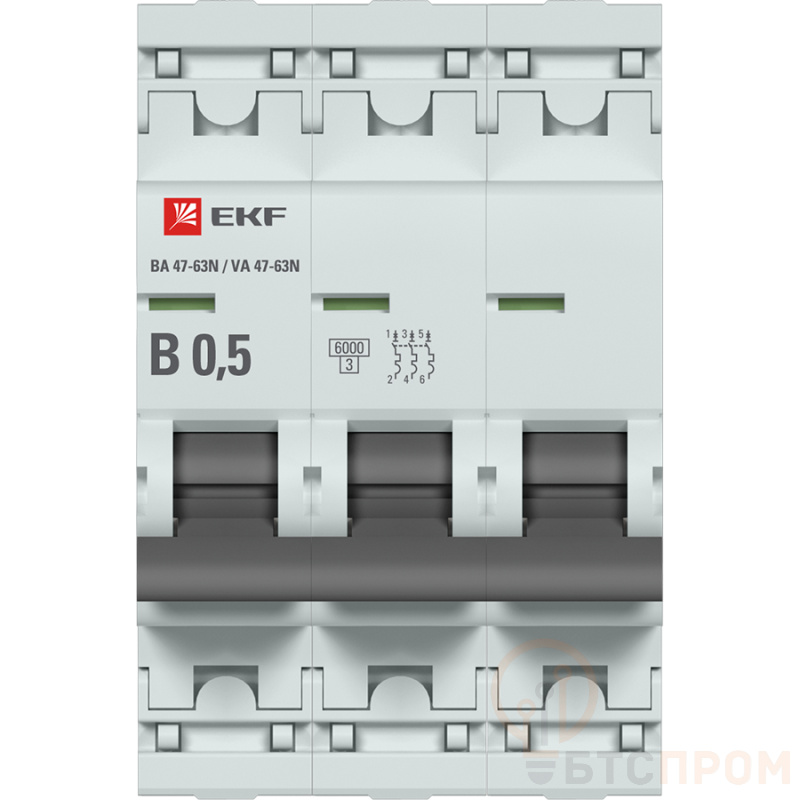 Автоматический выключатель модульный 3-полюсный B 0.5А 6кА ВА 47-63N PROxima от EKF – это компактное и надежное устройство для защиты электрических цепей от токов короткого замыкания и перегрузки. Номинальный ток аппарата составляет 0.5 А, а характеристика срабатывания «B» обеспечивает моментальное отключение при 3-5 кратном превышении тока, что идеально для цепей с низкими пусковыми токами.