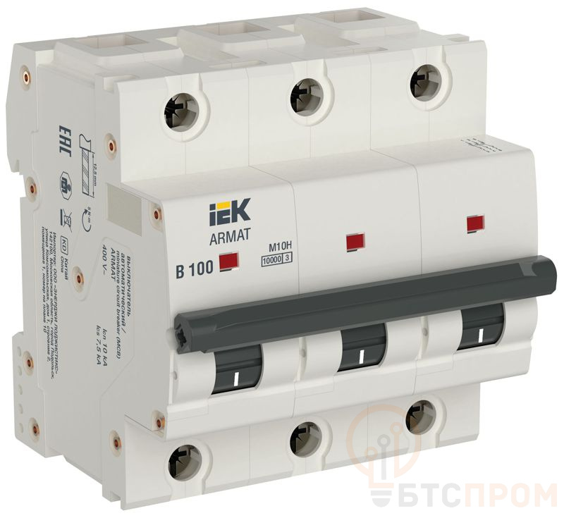 Выключатель автоматический модульный 3п B 100А M10H ARMAT IEK AR-M10H-3-B100 фото в каталоге от BTSprom.by