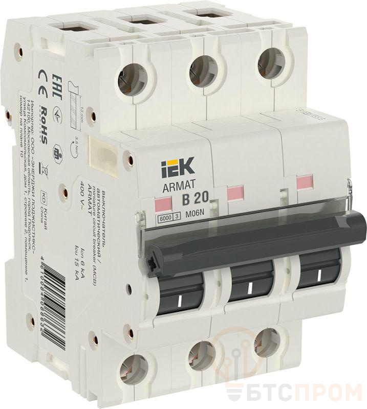 Выключатель автоматический модульный 3п B 20А M06N ARMAT IEK AR-M06N-3-B020 фото в каталоге от BTSprom.by