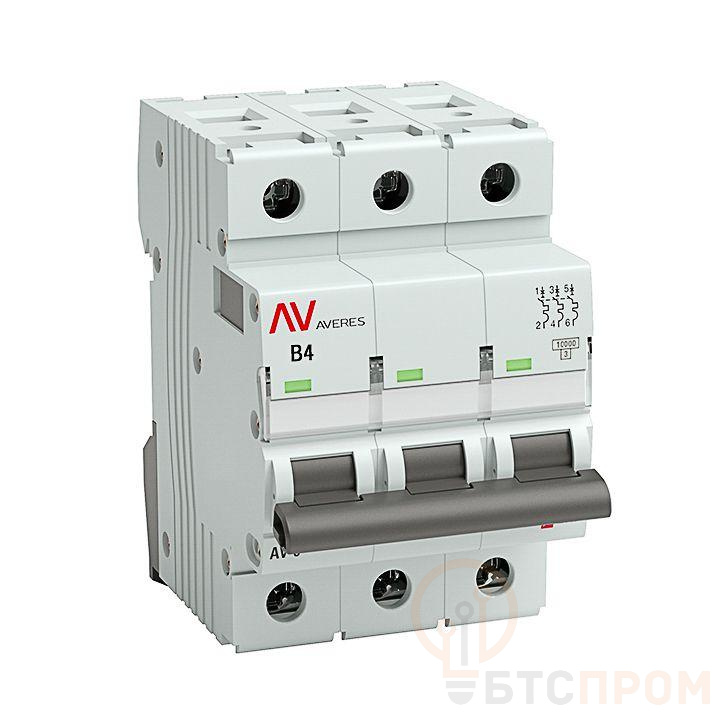 Выключатель автоматический модульный 3п B 4А 10кА AV-10 AVERES EKF mcb10-3-04B-av фото в каталоге от BTSprom.by