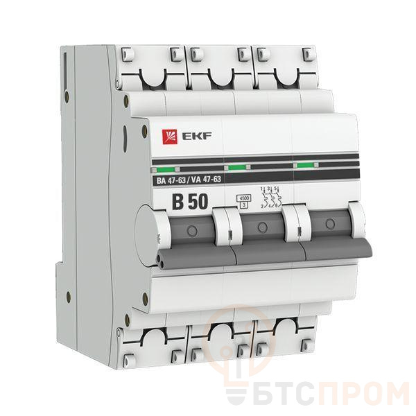 Выключатель автоматический модульный 3п B 50А 4.5кА ВА 47-63 PROxima EKF mcb4763-3-50B-pro фото в каталоге от BTSprom.by