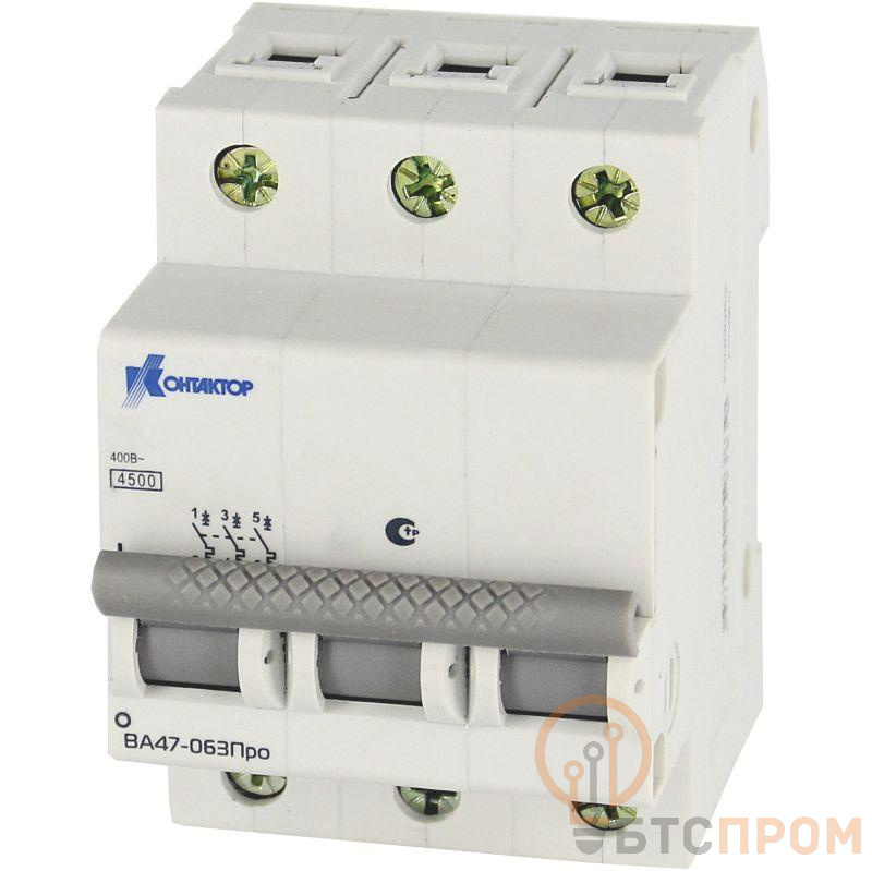 Автоматический выключатель модульный 3-полюсный B63 4.5кА ВА47-063 — это надежное устройство для защиты электрических цепей от токов короткого замыкания и перегрузки. Номинальный ток аппарата составляет 63 Ампера, а отключающая способность — 4500 А (4.5 кА), что гарантирует эффективное отключение питания в аварийной ситуации.