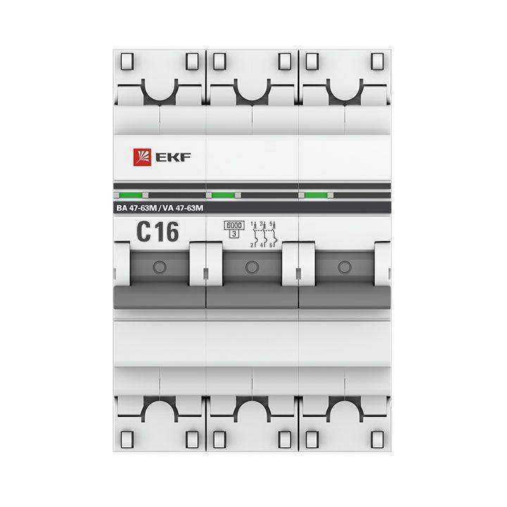 Выключатель автоматический модульный 3п C 16А 6кА ВА 47-63M электромагнит. расцеп. PROxima EKF mcb4763m-6-3-16C-pro