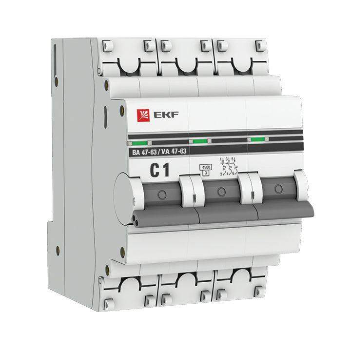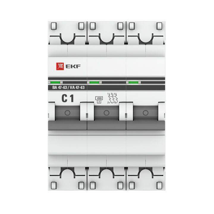 –Выключатель автоматический модульный 3п C 1А 4.5кА ВА 47-63 PROxima EKF mcb4763-3-01C-pro