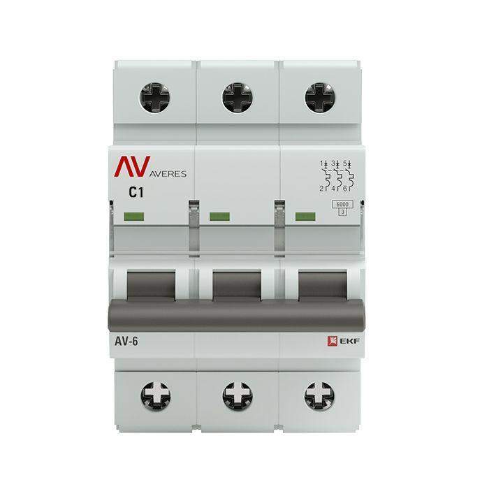 –Выключатель автоматический модульный 3п C 1А 6кА AV-6 AVERES EKF mcb6-3-01C-av