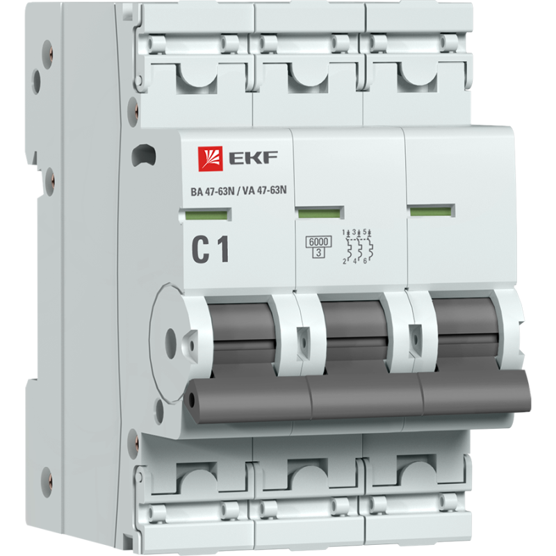 –Выключатель автоматический модульный 3п C 1А 6кА ВА 47-63N PROxima EKF M636301C