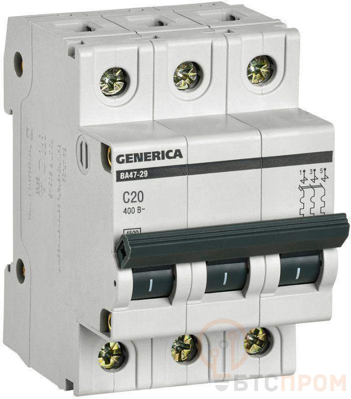 –Выключатель автоматический модульный 3п C 20А 4.5кА ВА47-29 GENERICA MVA25-3-020-C