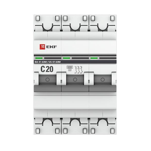 Выключатель автоматический модульный 3п C 20А 6кА ВА 47-63M электромагнит. расцеп. PROxima EKF mcb4763m-6-3-20C-pro