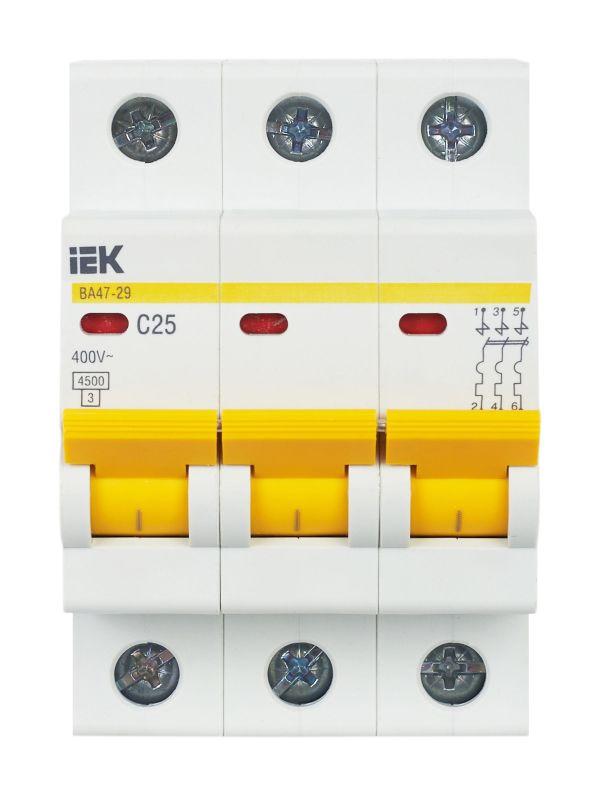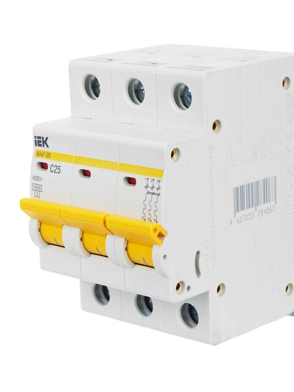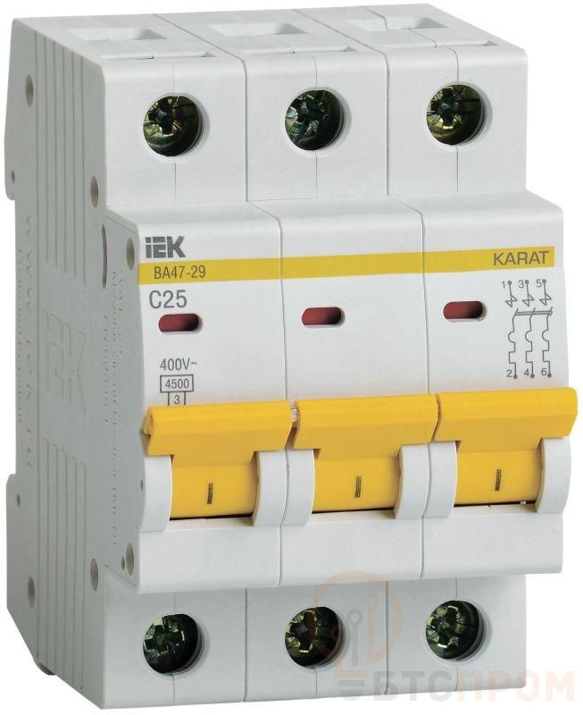 Выключатель автоматический модульный 3п C 25А 4.5кА ВА47-29 KARAT IEK MVA20-3-025-C фото в каталоге от BTSprom.by