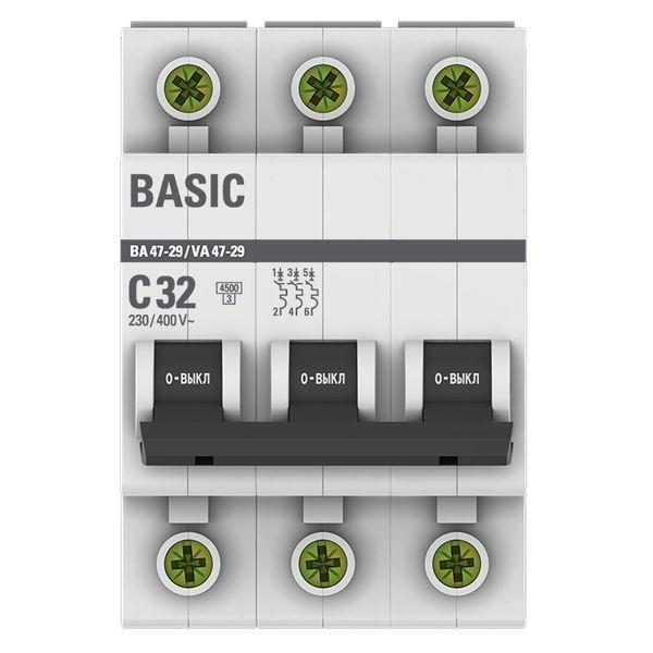 Выключатель автоматический модульный 3п C 32А 4.5кА ВА 47-29 Basic EKF mcb4729-3-32C фото в каталоге от BTSprom.by