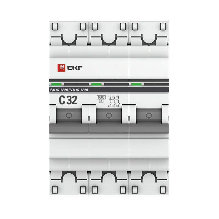 Выключатель автоматический модульный 3п C 32А 6кА ВА 47-63M электромагнит. расцеп. PROxima EKF mcb4763m-6-3-32C-pro