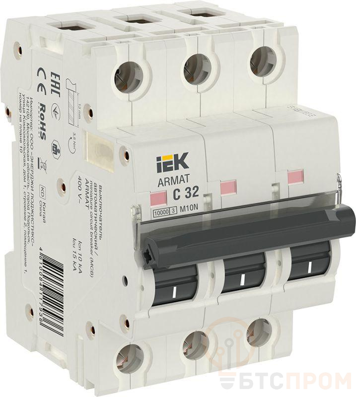 Выключатель автоматический модульный 3п C 32А M10N ARMAT IEK AR-M10N-3-C032 фото в каталоге от BTSprom.by
