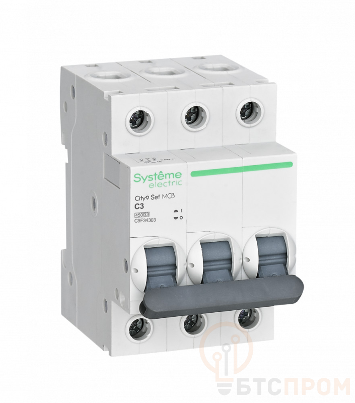 Автоматический выключатель City9 C9F34303 — это надежный трехполюсный модульный аппарат, предназначенный для защиты электрических цепей от токов короткого замыкания и перегрузки. Номинальный ток устройства составляет 3 А, а отключающая способность — 4500 А (4.5 кА), что гарантирует эффективную работу в бытовых и коммерческих сетях.