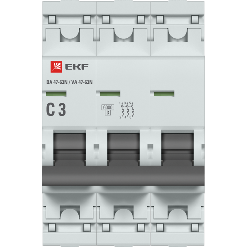 –Выключатель автоматический модульный 3п C 3А 6кА ВА 47-63N PROxima EKF M636303C