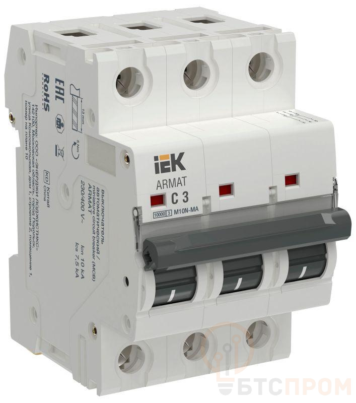 Выключатель автоматический модульный 3п C 3А M10N-MA без тепл. расцеп. ARMAT IEK AR-M10N-MA-3-C003 фото в каталоге от BTSprom.by