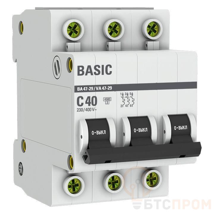 Выключатель автоматический модульный 3п C 40А 4.5кА ВА 47-29 Basic EKF mcb4729-3-40C фото в каталоге от BTSprom.by