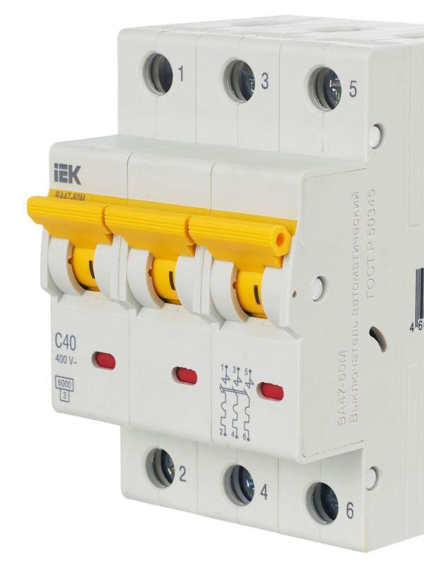 Выключатель автоматический модульный 3п C 40А 6кА ВА47-60M KARAT IEK MVA31-3-040-C фото в каталоге от BTSprom.by