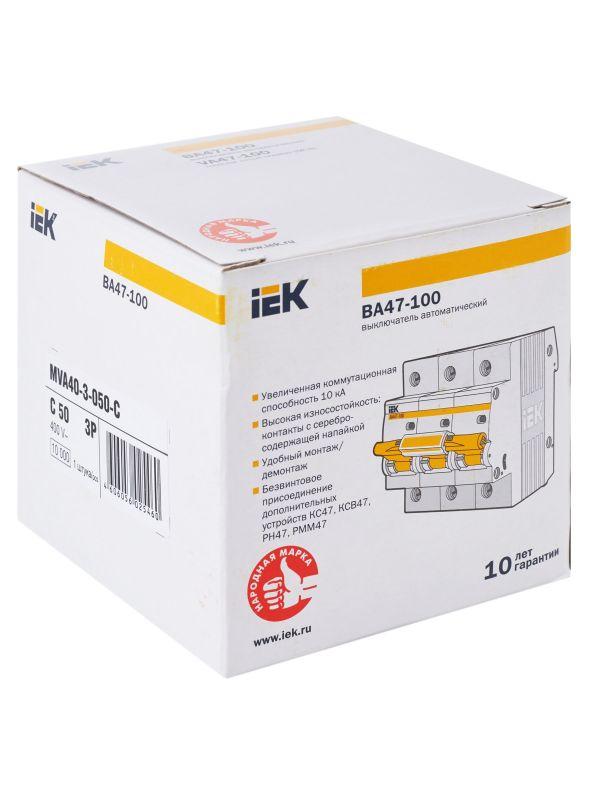 –Выключатель автоматический модульный 3п C 50А 10кА ВА47-100 KARAT IEK MVA40-3-050-C