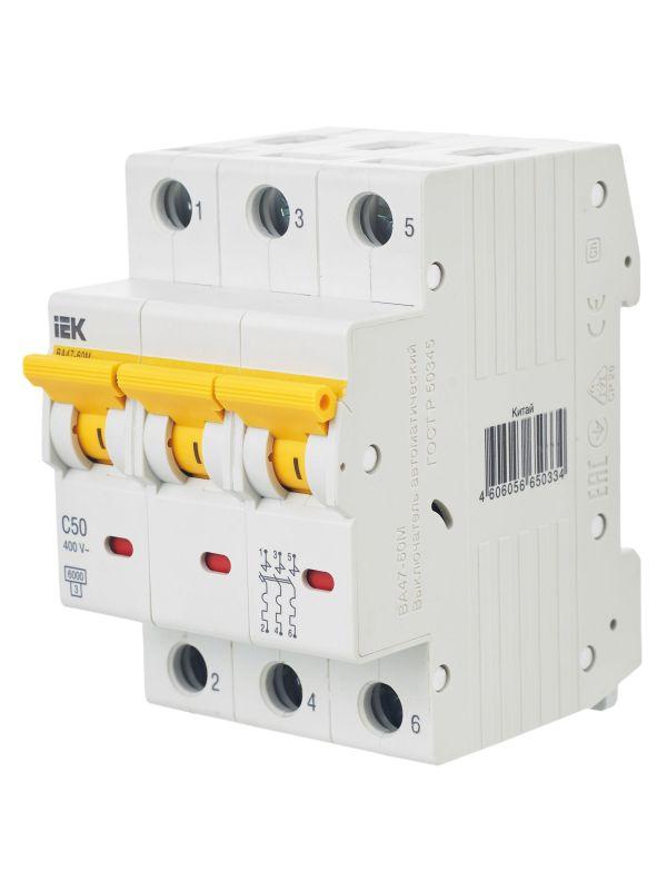 –Выключатель автоматический модульный 3п C 50А 6кА ВА47-60M KARAT IEK MVA31-3-050-C
