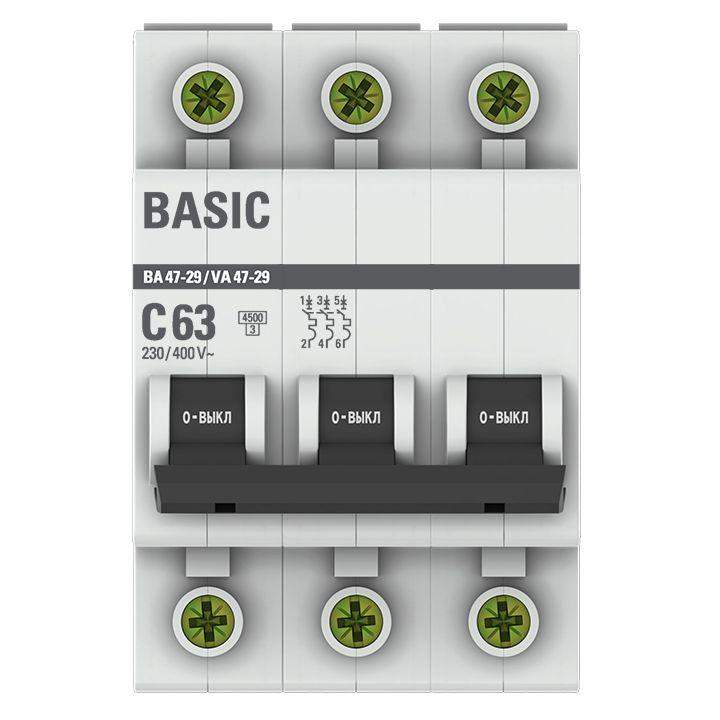 Выключатель автоматический модульный 3п C 63А 4.5кА ВА 47-29 Basic EKF mcb4729-3-63C фото в каталоге от BTSprom.by
